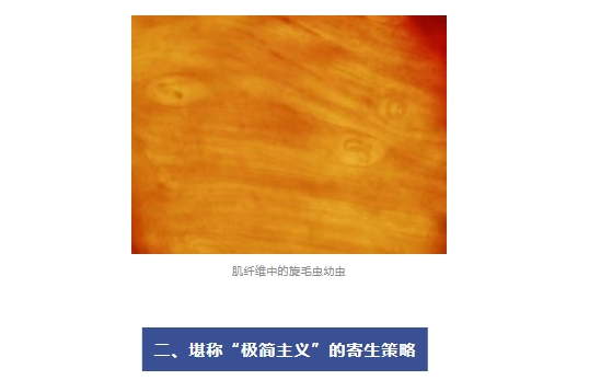 旋毛蟲的生活史極其簡單,不需要土壤、媒介或中間宿主等完成生活史,而能在同一宿主的不同部位完成“變身”。